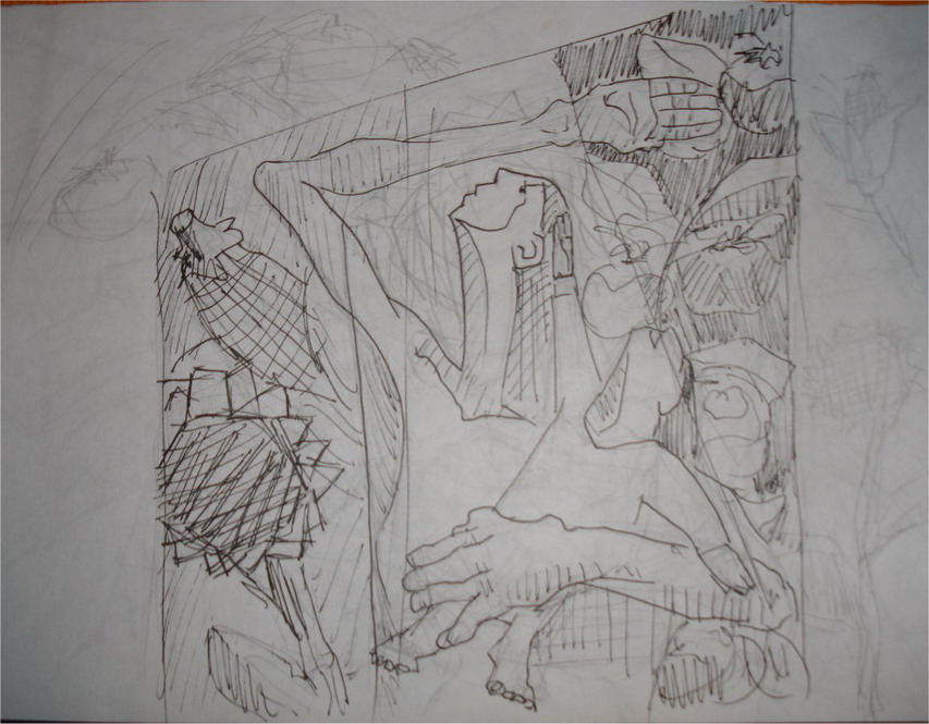 Buenos días. No se ustedes pero a mi me gusta cuando entro a un blog de un artista plástico, ya sea ilustrador, escultor, muralista o vende buzones, y que por lómenos algunas de sus obras tengan un registro paso a paso de cómo realizo el trabajo, desde el primer boceto hasta la imagen concluida. Por eso mismo les dejo estas fotos, en una especie de empatia para con aquellos a los que les gusta ver como se hacen las cosas.